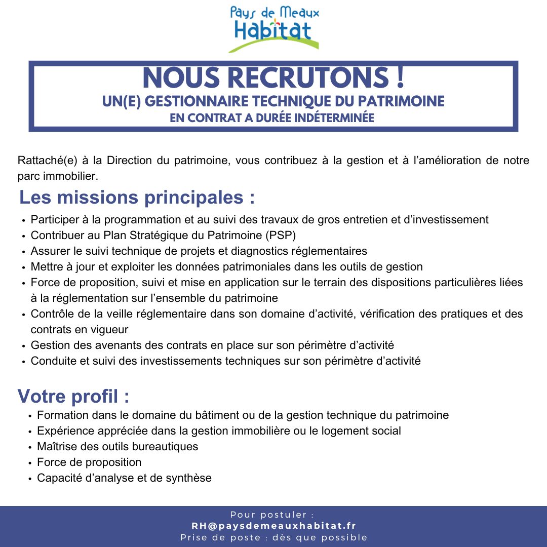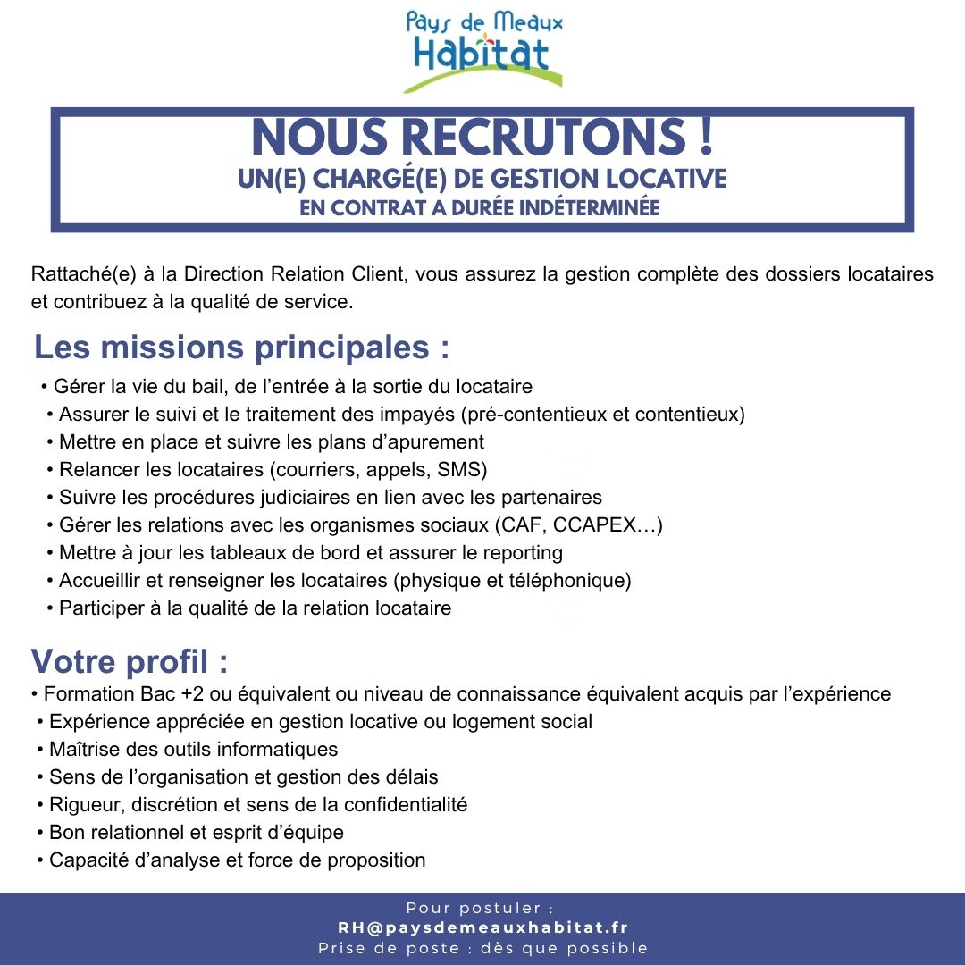 Vous souhaitez rejoindre nos équipes et travailler à Pays de Meaux Habitat ?